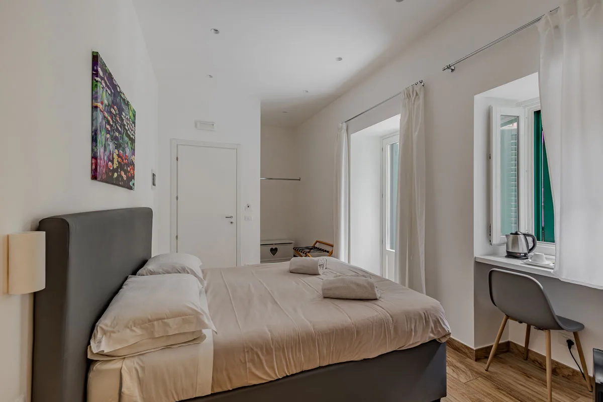 La stanza 4 Canti si distingue per la sua luminosità e per l’atmosfera accogliente, che unisce un design essenziale e moderno con dettagli che richiamano la tradizione siciliana. Il tutto incorniciato dal fascino senza tempo del quartiere che la ospita.