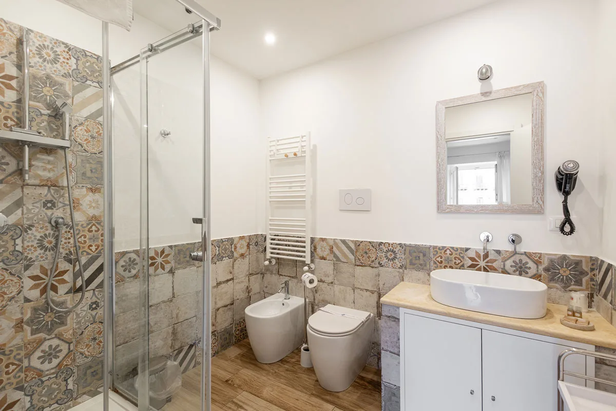 - Un bagno privato con doccia, corredato di set di cortesia, asciugacapelli e morbidi asciugamani.